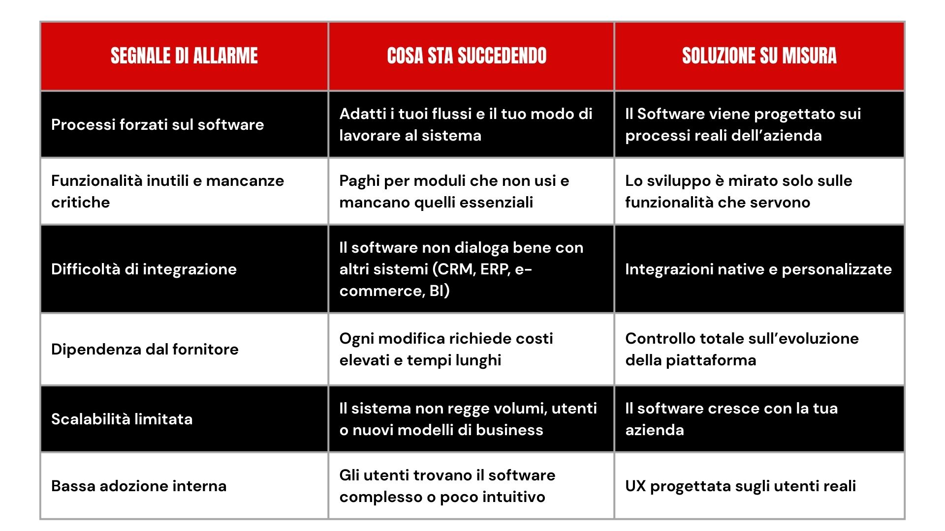 Se il tuo software ti obbliga a scendere a compromessi continui, probabilmente non è più adatto alla fase di crescita della tua azienda.